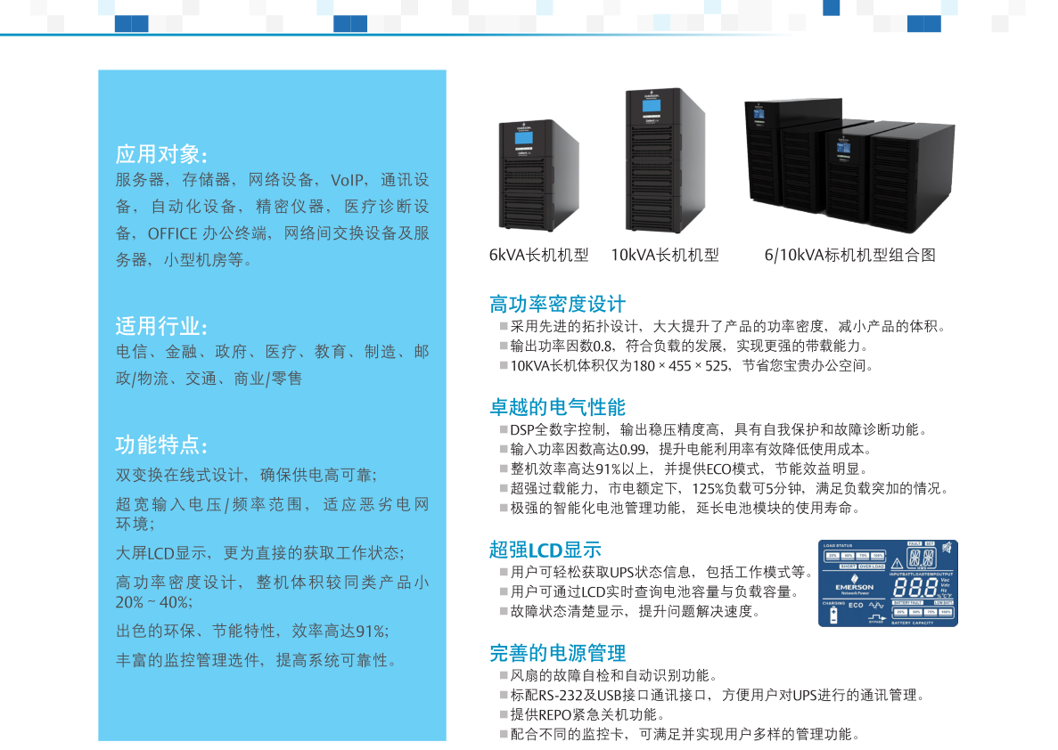 GXE系列UPS是艾默生基于IT行业交流不间断电源的应用动态,采用新拓扑,研发生产的全新一代塔式,单进单出,在线式高性能UPS产品。通过突出性能及环保特性